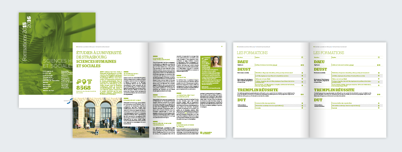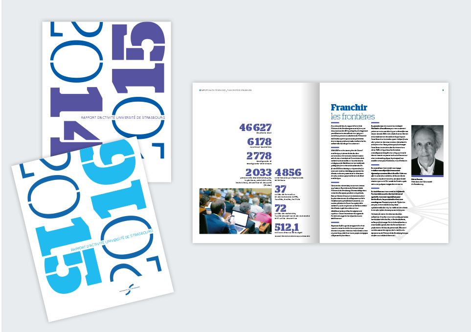 Conception de la charte graphique éditoriale de l’université de Strasbourg.