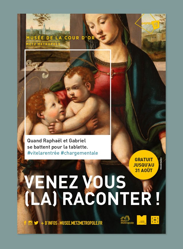 Une campagne au long cours pour réinscrire dans l’espace public messin la richesse des collections du Musée de la Cour d’Or. Un clin d’oeil humoristique qui remet au goût du jour notre patrimoine artistique et historique pour inciter à (re)découvrir ce lieu unique. Et en plus c’est gratuit !
